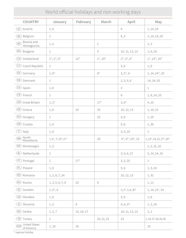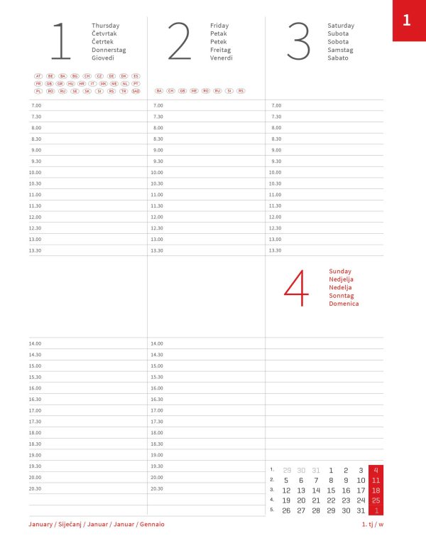 Prvi dio sadrži osnovne podatke, kalendar za tekuću i sljedeću godinu, popis praznika država članica EU, godišnji planer za tekuću godinu.