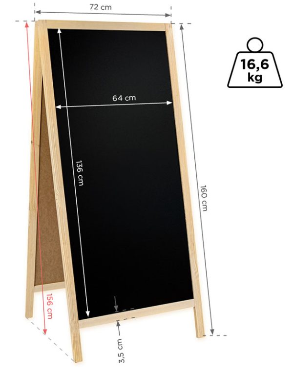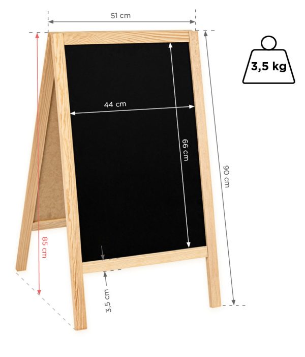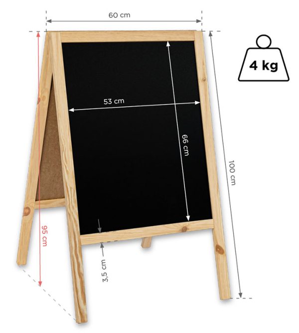 Predstavljeni proizvod bit će idealan u restoranima i raznim poslovnim prostorima, kao reklamni medij. Površina za pisanje izrađena je od ploče za pisanje kredom, što je vrlo praktično. Sadržaj se može lako očistiti i zamijeniti novim informacijama. Osim toga, proizvod je estetski i svestran. Uklopit će se u bilo koji prostor. Zahvaljujući drvenom okviru, ovaj znak je vrlo stabilan.